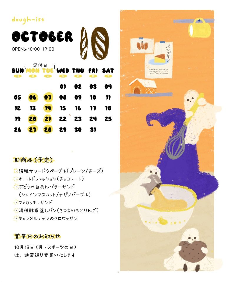 📢【10月営業日のお知らせ】 ・10月13日(月・スポーツの日)通常営業 dough【生地】-ist【専門家】 dough-istオリジナルの湯種製法による、ここでしか味わえないもちもちな新食感生地を、是非お楽しみください。 dough-ist(ドウイスト)は北海道産国産小麦を中心に使用し、一部にアメリカ産有機小麦、ドイツ産有機ライ麦を使用しています。 dough-istの思い「パンとともに、“成長の力”を届けたい。」dough-istのロゴは、やさしい黄色。その上には、小さな芽がひとつ、芽吹いています🌱黄色がかった新緑になる前の、発芽したばかりのやわらかな色。それは、まだ歩み始めたばかりの私たちの姿を表しています。未完成だからこそ、日々学び、挑戦し、育っていくことを大切にしています。黄色という色は、「温かさ」「希望」「創造力」を象徴し、行動する勇気を与えてくれる色でもあります。このロゴに込めた想いは、ブランドの根幹にある「成長の力」というテーマと、深くつながっています。私たちがつくるパンは、単なる食べ物ではありません。そのひとつひとつに、「今日も誰かの一日をそっと支えられるように」という想いを込めて、丁寧に焼き上げています。dough-istは、スタッフ一人ひとりにとっても、成長できる場所でありたいと考えています。そして、訪れてくださるお客様にとっても、どこか前向きな気持ちになれる、そんなお店でありたいと願っています。もっと美味しいパンを届けたい。もっと心が動くようなお店をつくっていきたい。そして私たち自身もまた、毎日のパンづくりの中で、“あたたかな物語”を紡ぎながら、“成長の歌”を静かに、でもたしかに歌い続けていきます。 お知らせ ・営業日は祝日を除く月・火曜日が定休日となります ・営業時間は10時~19時です。パンが売り切れの場合は、早く店を閉めることもあります ・10月13日(月)スポーツの日:営業いたします dough-ist 通販サイトはこちら 🍩dough-istオリジナル 湯種製法のドーナツ🍩ひと口かじると、やさしい甘さとともに、どこか懐かしい気持ちがふわり。・シナモンシュガー・チョコレート🍫・抹茶きなこ・和三盆シュガー などなど…それぞれのフレーバーに合わせて、パン生地も変えています。風味や食感の違いも、楽しんでいただけたら嬉しいです dough-istパンMenu(一例です) ■ドウイスト粉の50%の湯種を使用し、麹を使用した自家製酵母で発酵させました。ドウイストのシグネチャーブレッドです。酸味をなるべく出さず、シンプルな配合なのに、歯切れや口溶けの良い、【おにぎり】のような存在になれるような日本の新しい食事パンを目指しています。 ■ドウイスト(全粒粉)農薬化学肥料不使用の農林61号の全粒粉を湯種として粉の61%まで使用し、レーズン種とルヴァンで発酵させた甘さと爽やかな酸味と粉の風味を強く感じられる全粒粉のサワードウブレッドです。もちもちだけど歯切れと口溶けの良い新食感のパンを目指しました。 ■サワードウ・カントリーブレッドアメリカ産有機小麦・ドイツ産有機ライ麦・北海道産小麦を使用し、 湯種・お湯中種・熟成湯種などdough-istオリジナルの製法で仕込んだサワードウブレッドです。 ■サワードウ・フルーツナッツカントリーブレッドの生地にドライフルーツ(レーズン・オレンジピール・アプリコット・クランベリー)とナッツ(アーモンド・カシューナッツ)を混ぜ入れました。 ■サワードウ・ライブレッドドイツ産有機ライ麦全粒粉を60%以上使用したデンマークのサワードウブレッドです。ライ麦の熟成湯種とルヴァンで発酵させた、ライ麦がメインのパンですがしっとりほろほろで、食べやすい酸味の味わい深い食事パンです。薄くスライスしてお召し上がり頂きたいです。 ■サワードウ・ライブレッド(シリアル・ナッツ・シード)ドイツ産有機ライ麦を使用した湯種ルブロ生地に、様々なナッツ・シード・雑穀を混ぜ入れました。 ■熟成湯種バゲット湯ゲル・熟成湯種・お湯中種など、様々な製法で熟成と水和を目指した、粉の甘さや旨味を引き出した北海道産小麦のバゲットです。クラストは厚すぎず、クラムはしっとりもちもちだけど口どけの良いバゲットを目指しました。 ■湯種スコーン北海道産小麦と発酵バターを使用し、ヨーグルトで仕込みバターを折り込むオリジナル製法のスコーンです。カソナッド・ゲランドの塩をトッピングし焼き上げました。パンスイスのように層を立てて焼くことで無駄な油を落とし外ザクザク、中しっとり口どけ良いスコーンです。 ■湯種スコーン(アールグレイ)湯種を使用することで外はザクザクなのに、 中はしっとりの面白い食感のスコーンを目指しました。一枚ずつ剥がして食べる楽しみもあります。 仕上げにレモン果汁を塗ることで 爽やかなレモンティーのような味わいとアクセントとなるゲランドの塩を隠し味としてトッピングしております。 ■みたらしハニートースト湯種クロワッサンを使用したハニートーストです。 
